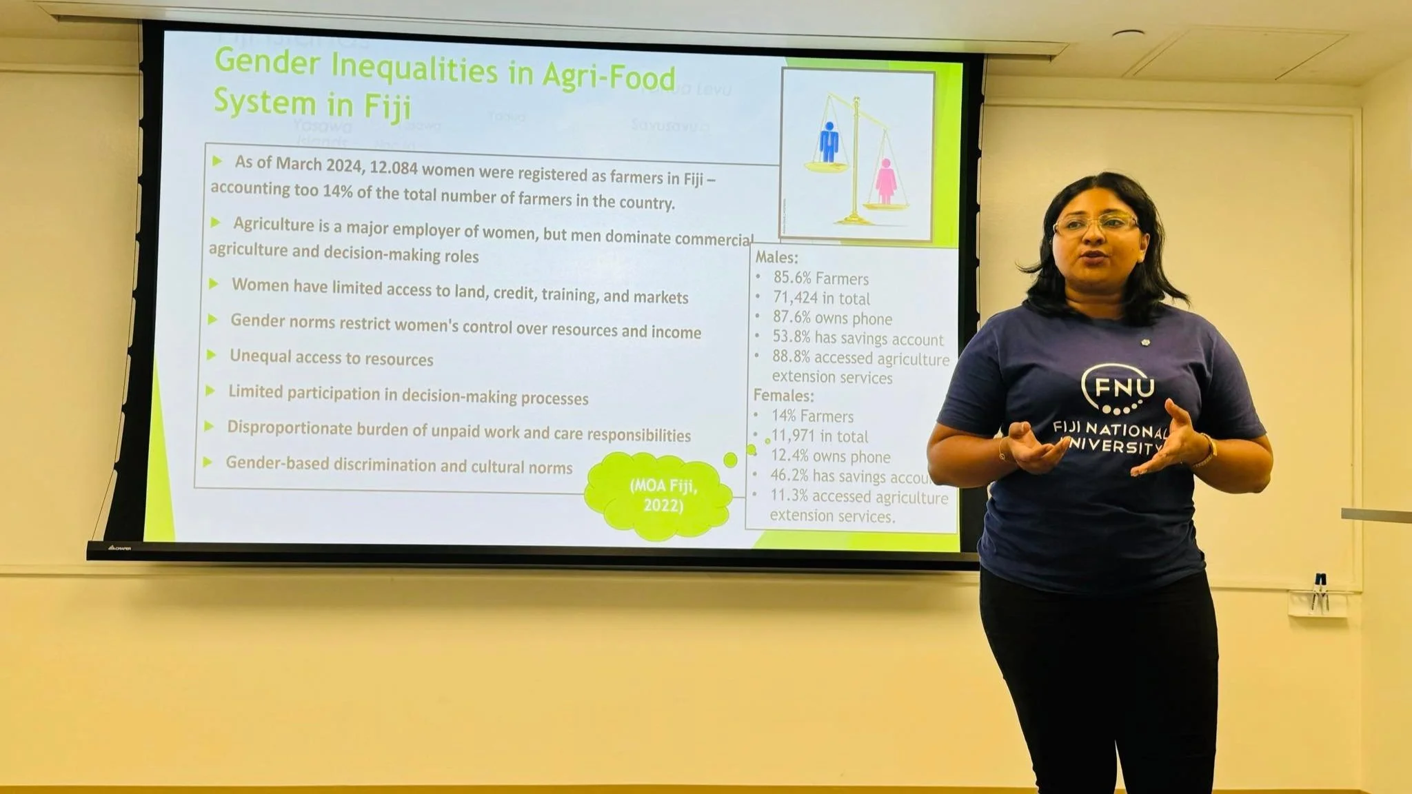As I stepped onto the stage at Cornell University for my presentation, I felt an acute feeling of anxiety. My presentation on “The Changing Role of Women in the Agriculture Sector and Their Contribution to Climate Change Mitigation and Adaptation in Sigatoka and Ba, Fiji” was distinctive compared to the more traditional research themes. Nevertheless, as I commenced my talk, I observed the audience’s captivated focus as I revealed the knowledge acquired from my research conducted in Fiji. The room was filled with intrigue, especially among the female participants, who appeared enthralled by the unusual yet inspiring narratives of Fijian female farmers. As I continued to explore my thesis, my nervousness dissipated due to the noticeable interest in the audience. The subsequent question and answer sessions were highly charged. Audience members in the session room enthusiastically raised their hands, eager to get further knowledge about Fiji’s agricultural techniques and the women leading the way in driving change. I experienced a strong sense of enthusiasm while answering enquiries regarding Fiji’s culture, climate difficulties, and the inventive methods employed by its female farmers. My paper provided valuable research and introduced the audience to a new and less familiar window that the room had never explored (Fiji), making it a standout moment of the session.